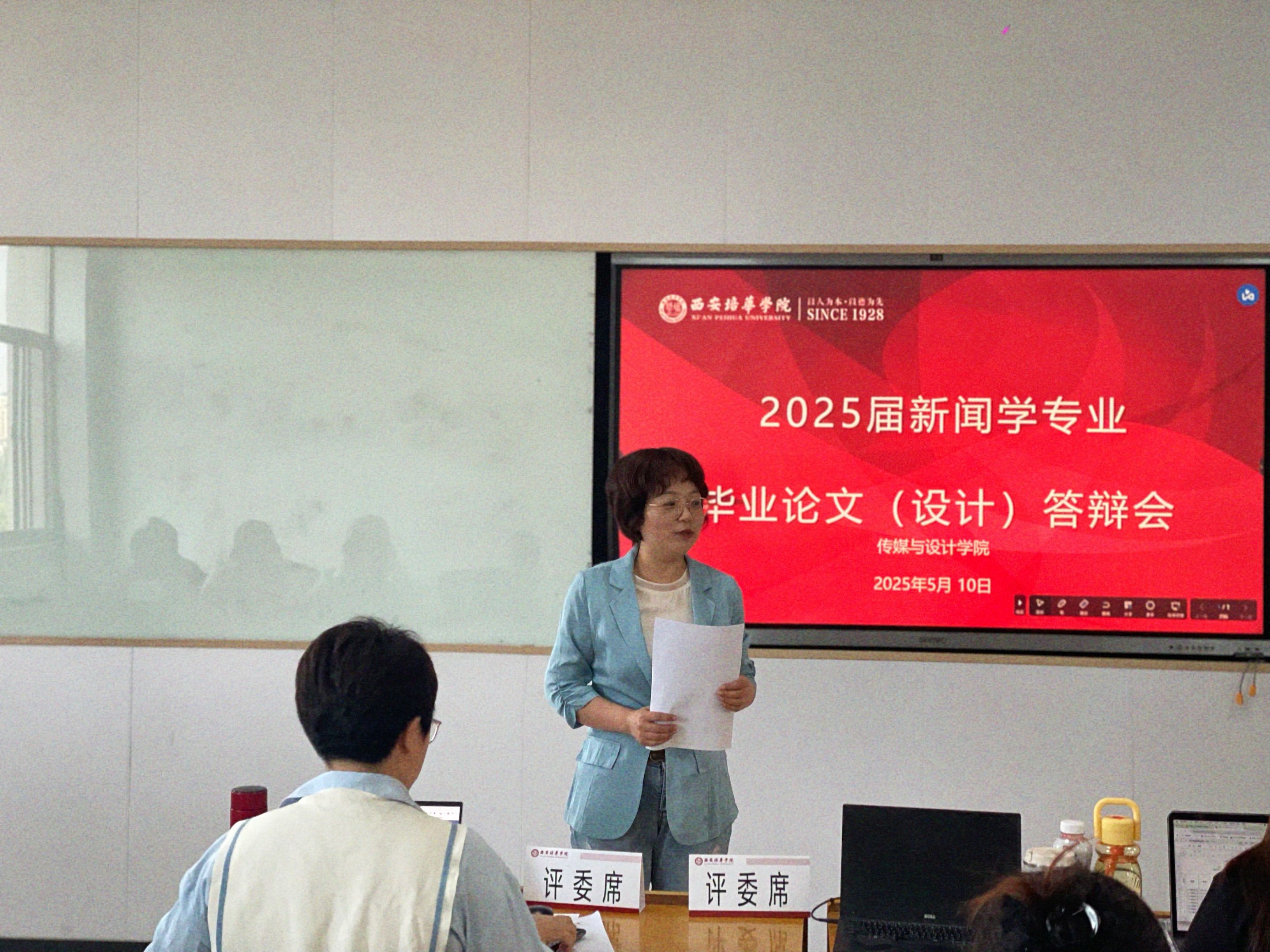 2025年5月10日,传媒与设计学院新闻学专业2025届本科毕业论文(设计)答辩工作在汇知楼顺利完成。本届毕业论文(设计)答辩工作共设3个答辩组,答辩学生89名,新闻学专业教师童瑾、梁小凤、张琨担任各组答辩组长,陈丽娟、田秀秀、张晓露、刘路路、李瑞、仝师瑗6名骨干教师担任答辩评委并参与评审工作。其中,梁小凤、张晓露、刘路路、童瑾老师等人均为双师双能型教师。