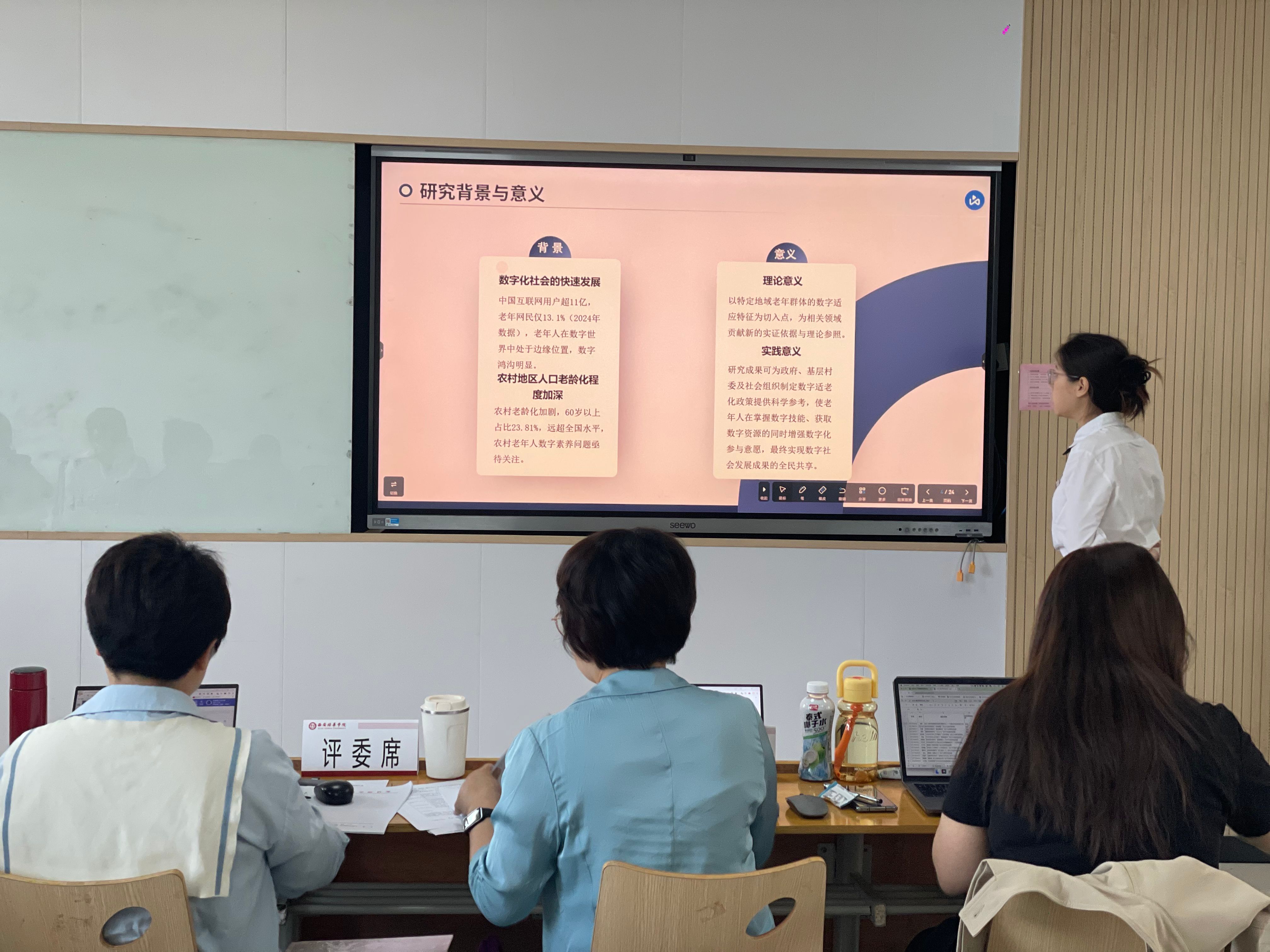 本科毕业论文(设计)答辩流程严谨规范,设置了毕业论文(设计)阐述、评委点评与提问、考生回答问题等环节。在答辩过程中学生就各自毕业论文的选题、结构、内容、研究价值和现实意义等方面进行了陈述,答辩评委立足论文主体,围绕论文结构框架、论文逻辑等,从不同角度进行了点评与提问。针对学生回答,答辩评委提出了专业的修改意见和建议,帮助学生进一步完善论文,为学生的毕业论文(设计)把好关。