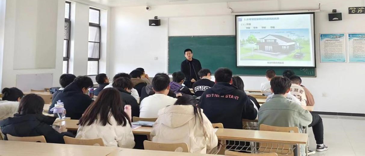 管老师主要从冷弯薄壁型钢结构的发展与应用与国家政策指导方针,冷弯薄壁型钢剪力墙的发展现状,冷弯薄壁型钢组合楼盖的研究现状,多层冷弯薄壁型钢结构体系发展,互动环节等展开。讲座过程中,穿插了如何开展科学研究,如何进行科研论文的撰写与发表等,激发了学生的科研积极性。