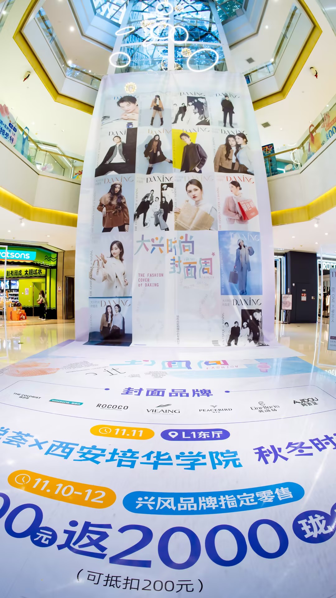 龙湖西安大兴星悦荟11月【大兴时尚封面周】活动即将开启。活动前夕,大兴星悦荟联动西安培华学院校模特队同学及场内知名零售品牌洛可可、薇迎、太平鸟男装、英落易、调色师、屈臣氏,携秋冬季新品进行统一棚拍,并设计为线下时尚封面氛围展,进行全月展示。