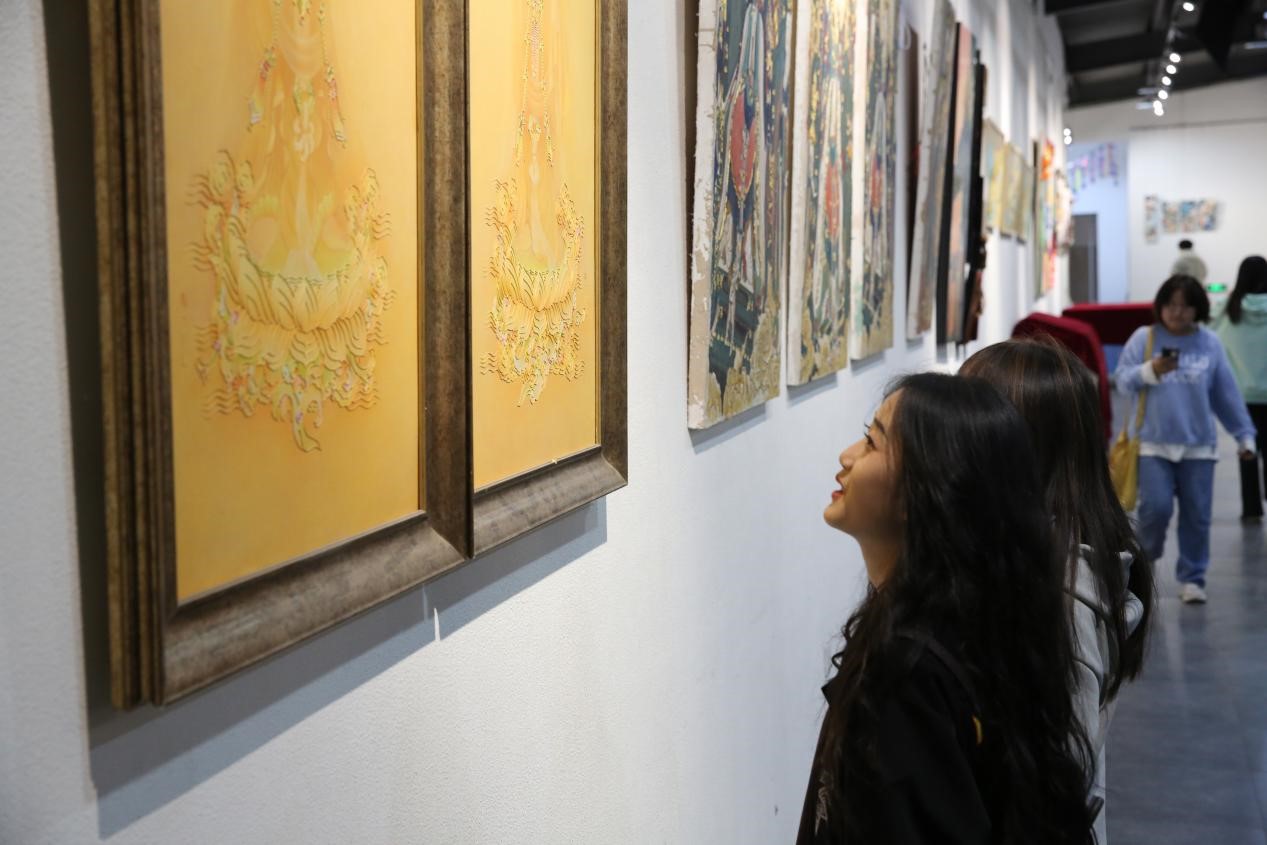 时尚艺术设计系主任贾亚丽对于工艺美术专业的学情进行了简单的介绍,就我校人才培养方案、教师教学管理及毕业设计管理进行分享。同时,张钦老师通过具体作品为师生讲解壁画的类型及不同类型的特点和制作技法介绍后,师生参观了工艺美术专业实训室及张钦老师壁画工作室,了解了工艺美术上课过程。随后,宫丰敏老师一行前往学术交流中心和工美楼参观,贾亚丽主任分享了我院在工艺美术教育方向在教学和实践中的经验。