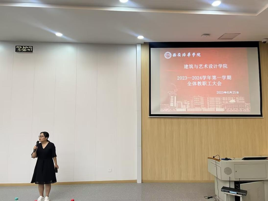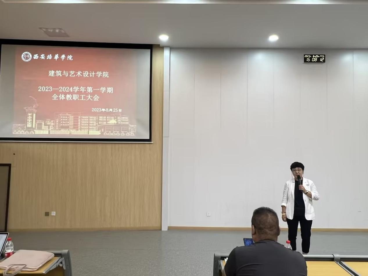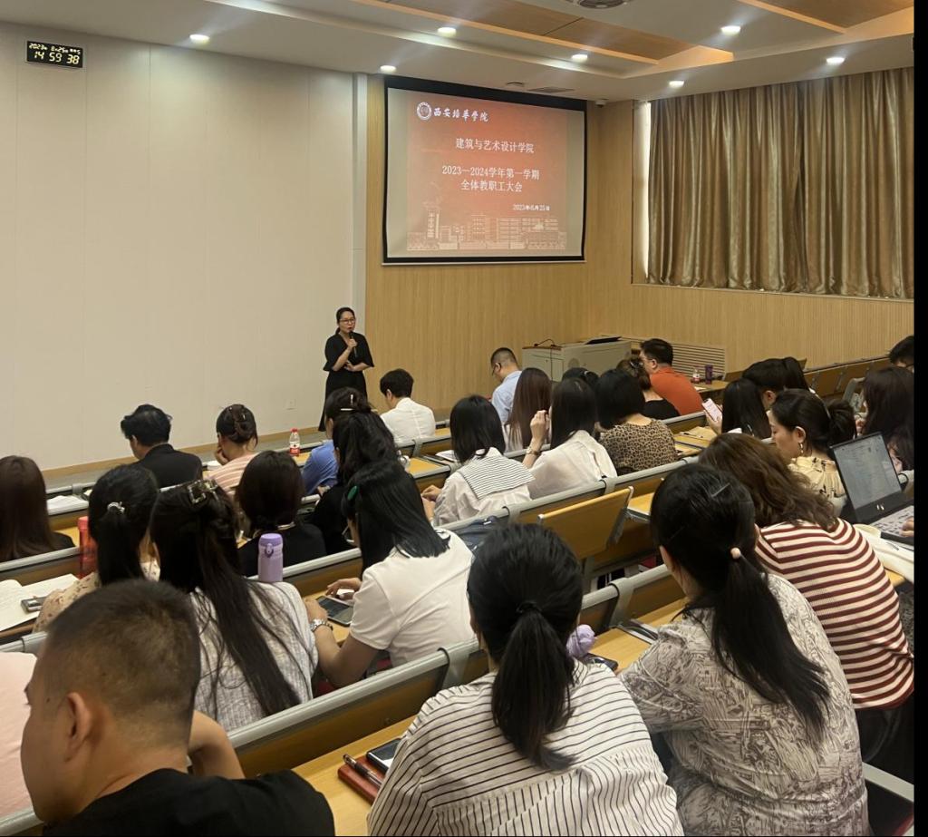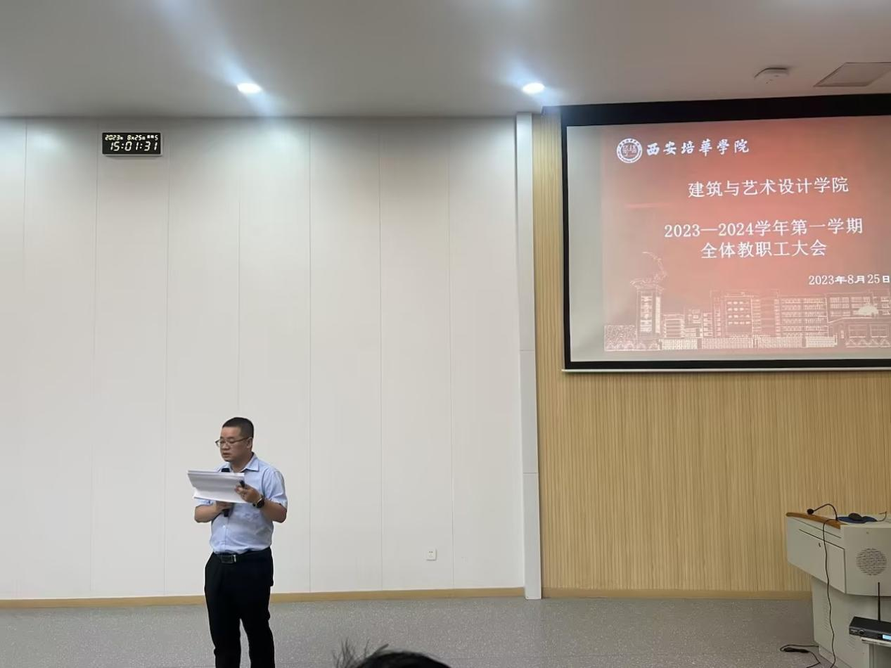 为确保新学期各项工作起好步、开好局、谋好篇,8月25日下午15:00,建筑与艺术设计学院在育英楼3505召开2023-2024学年第一学期全体教职工大会,对新一学期的工作进行了全面部署,全体教职工参加了此次大会,院长助理刘清颖主持此次会议。