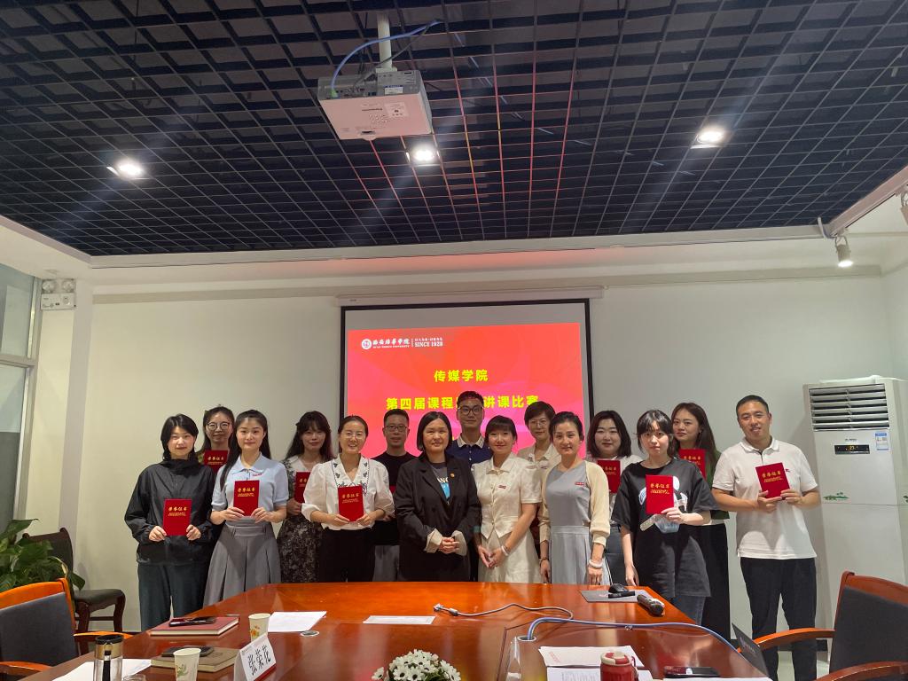 为贯彻落实立德树人根本任务,充分发挥课堂教学的主渠道作用,把思想教育贯穿人才培养体系,全面推进学院课程思政建设,提高课程育人实效、提升人才培养质量,7月3日下午传媒学院在汇知楼第四会议室举行了第四届“课程思政”讲课比赛。本次院赛由传媒学院副院长张荣花主持,各专业推荐11位教师现场进行了课程思政改革教学展示,特别邀请了校级课程思政教学名师、校级课程思政优质示范课负责人尚勇;陕西高校思政课教师“大练兵”课程思政教学能手房宁;省级线下一流课程负责人、校级课程思政示范课负责人范瑞婵担任评委。