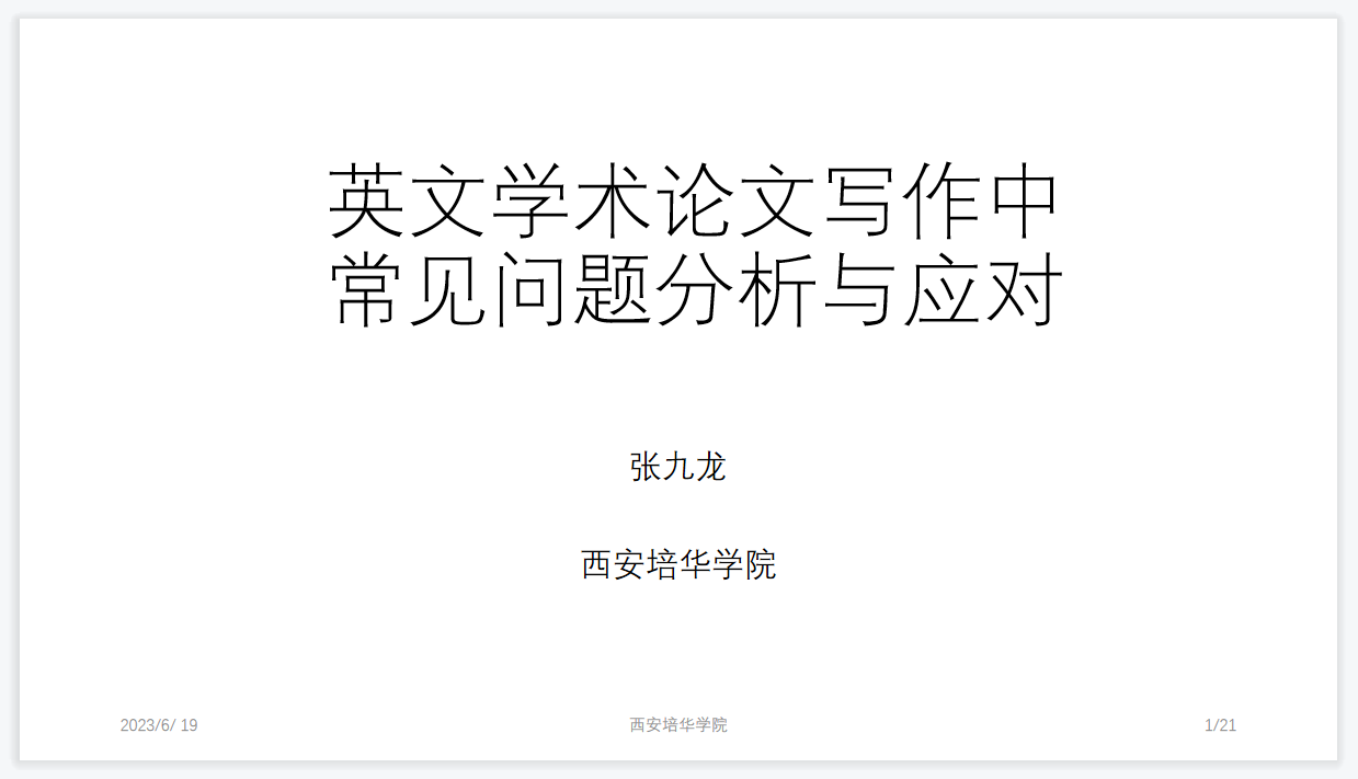 为提高我院教师教科研水平,督促教师发表高质量教科研论文,6月19日晚20:00,建筑与艺术设计学院特邀西安理工大学张九龙副教授为全体教师举办线上“英文论文撰写关键技术实战分析演练”讲座。本次讲座由张九龙副教授主讲,我院院长助理刘清颖主持,全体教师参加。