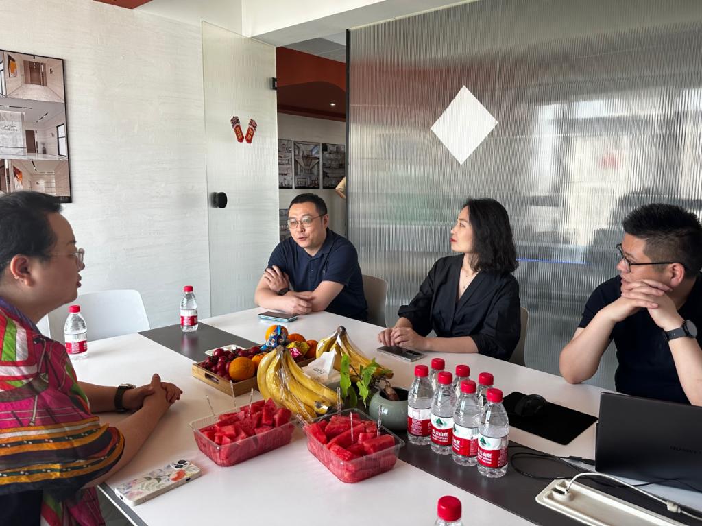 公司创始人、总设计师张凯先生,联合创始人、设计总监王春晓先生,主案设计师程文强及方案设计师陈鹏亲切接待我专业师生一行,先后介绍了企业成功案例、企业机构组成,并就专业建设、学生就业等问题进行了深入交流。