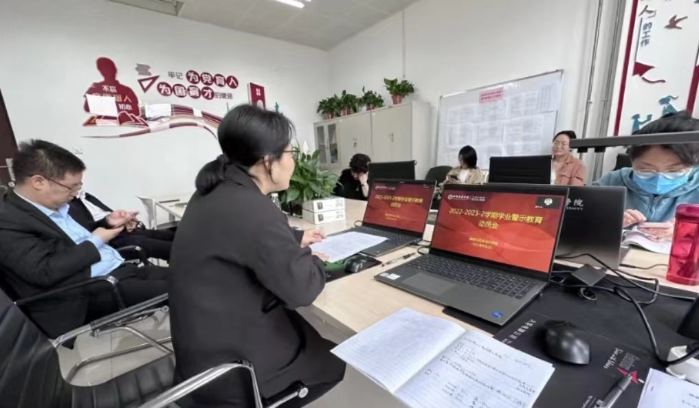 最后由常务副院长徐莹作总结讲话。学业警示教育是推进学风建设,充分发挥学院、学生、家庭三结合的教育功能,帮助学生顺利完成学业,保障我院教育教学和人才培养质量的重要途径,请各位学业导师及辅导员老师们高度重视,正视问题并及时解决。学业预警“红、橙、黄”三个颜色的背后,反映出的是学生们挂科不止、重考不停的现状。实际上,不论是哪种颜色的预警,都是为了让同学能够清醒地认知自己的学业修读情况是否完成人才培养方案的要求,正确分析自己成绩不理想的原因,并制定符合实际的学习目标。这项机制是给大学生的一记警钟,希望大家真正意识到“学习在己”,不忘初心、专注学习。