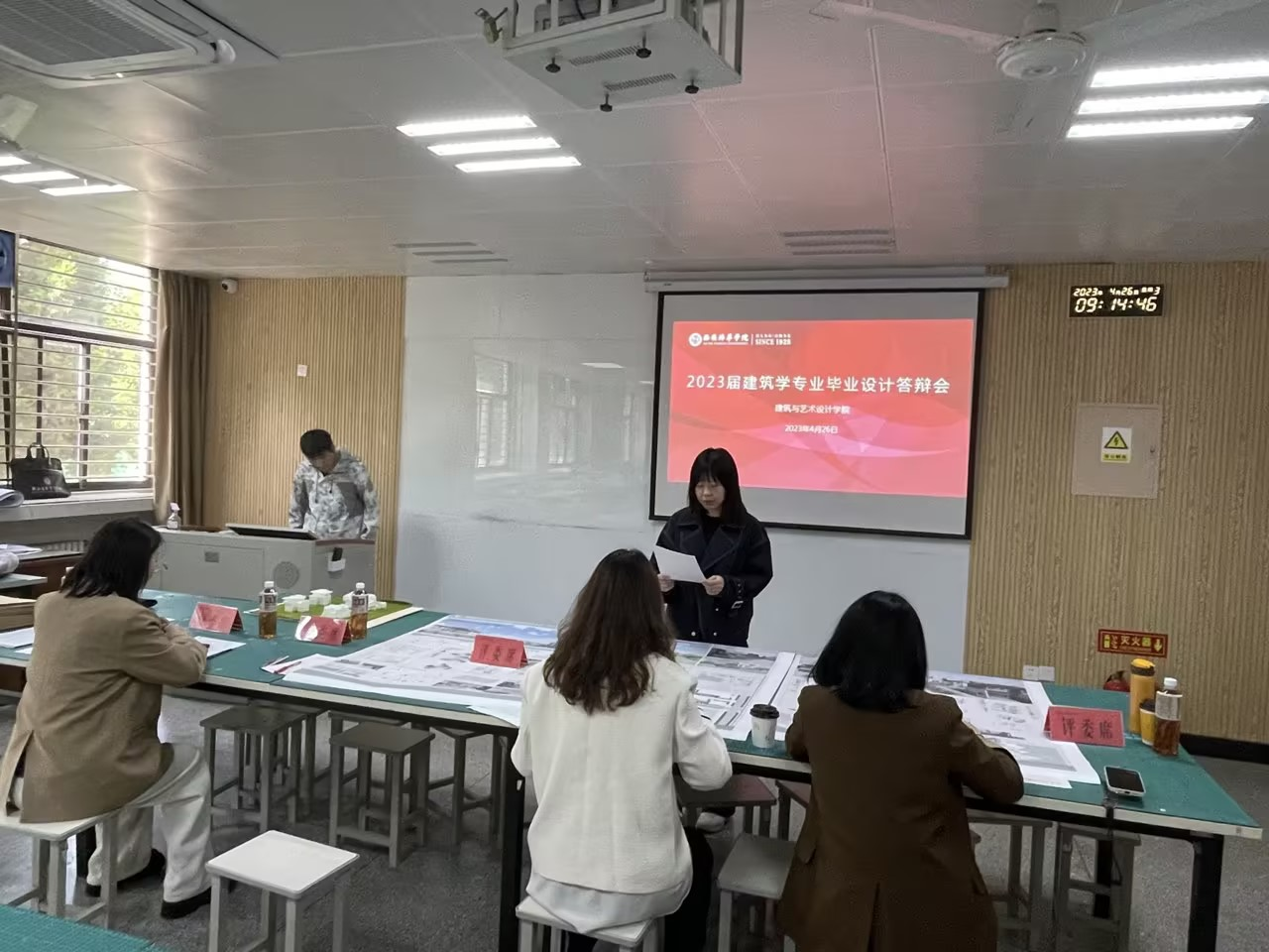 毕业设计是完成教学计划,达到本科学生人才培养目标的重要环节,根据学校教学工作的进度安排,建筑与艺术设计学院建筑学专业于2023年4月26日—27日开展了2023届本科生毕业设计答辩工作。参加本次答辩工作的有建筑学专业带头人王琰老师、建筑系主任魏舒乐老师、专任教师戴煜轩老师、杨雪老师、赵艺阳老师,答辩秘书由周京蓉老师担任。