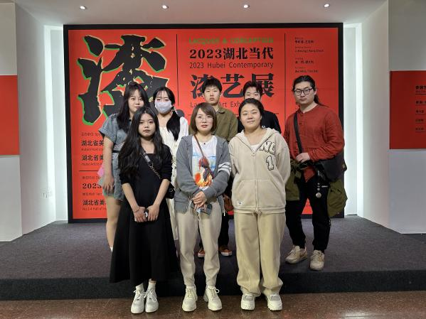 在湖北省美术馆与湖北美术学院美术馆,师生们分别参观了《变通:2023湖北漆艺三年展》、《漆•境—湖北当代漆艺展》,这两个展览都是以漆艺为主题,毕业班同学们根据毕业设计的总体要求与目标、细致地研究每一件作品的创作立意、表现形式和基本内涵,即感受到了传统漆艺的继承与沉淀,也感受到了当代漆艺的突破与创新。即体会到了表现手法的多样化,也体会到了超脱于技法之外的思想性,在一定程度上丰富了毕业设计的创作思维。