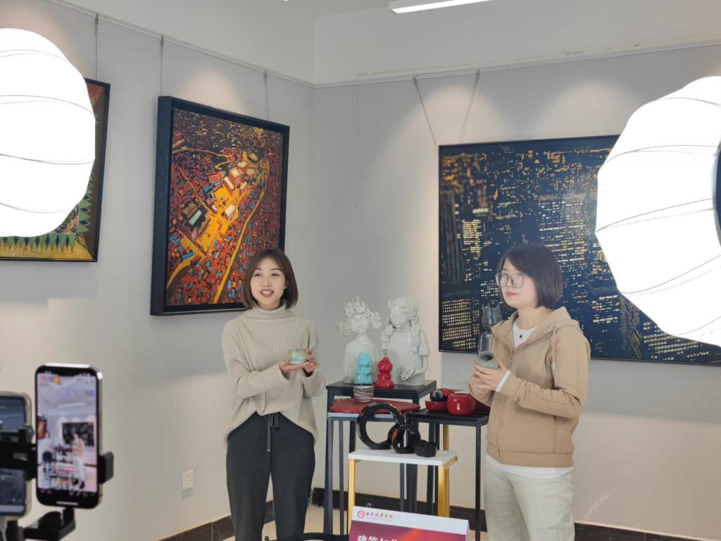 学生的陶艺及漆艺作品引发了观众们的好奇心,两位老师向大家具体介绍了学生作品,并希望通过直播的形式,让更多的艺术类学生了解工艺美术专业,也希望有更多的企业看到学生的优秀作品,为我院学生提供更多的优质就业岗位。