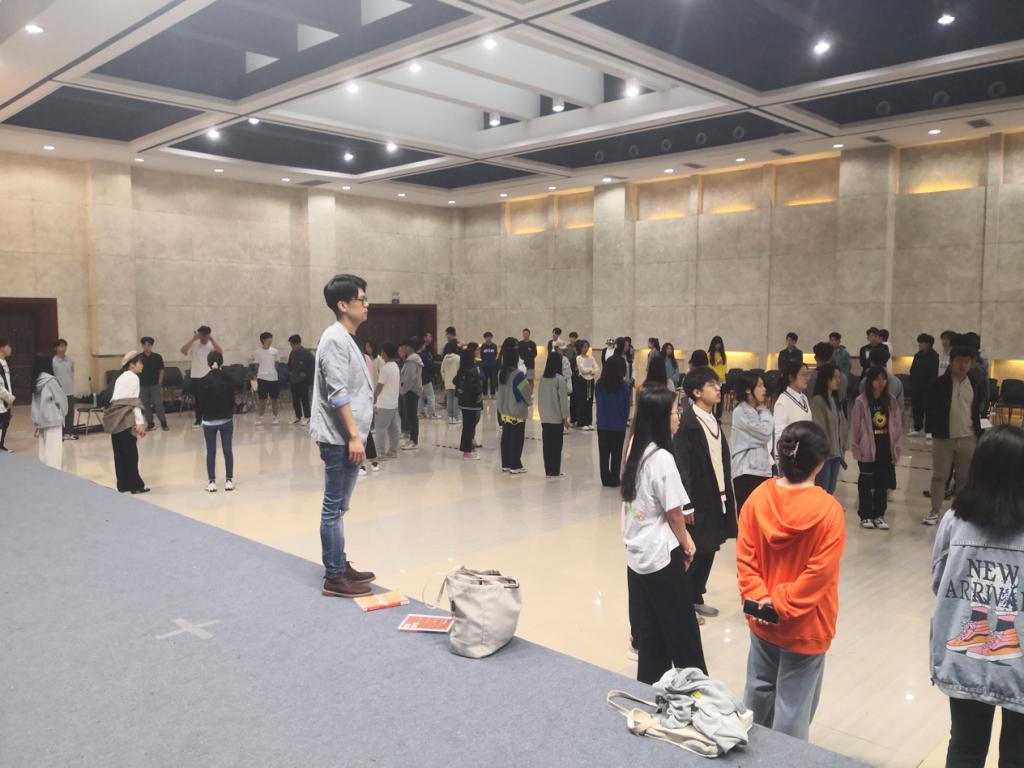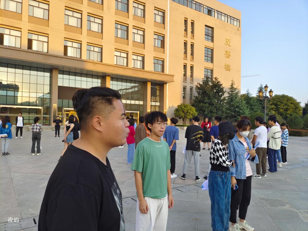 本次练声是大一新生来到大学的首次专业教学实践活动,2021级的学业导师魏璐、买丽颖、史文杰、甘辉杰、陈雪等多位老师来到现场对同学们进行指导。在练声开始前,大一年级主任魏璐老师向同学们说明了每天练声的具体步骤,同时高年级的学长学姐们也对新生进行专业上的“传帮带”,通过以老带新提高专业能力。