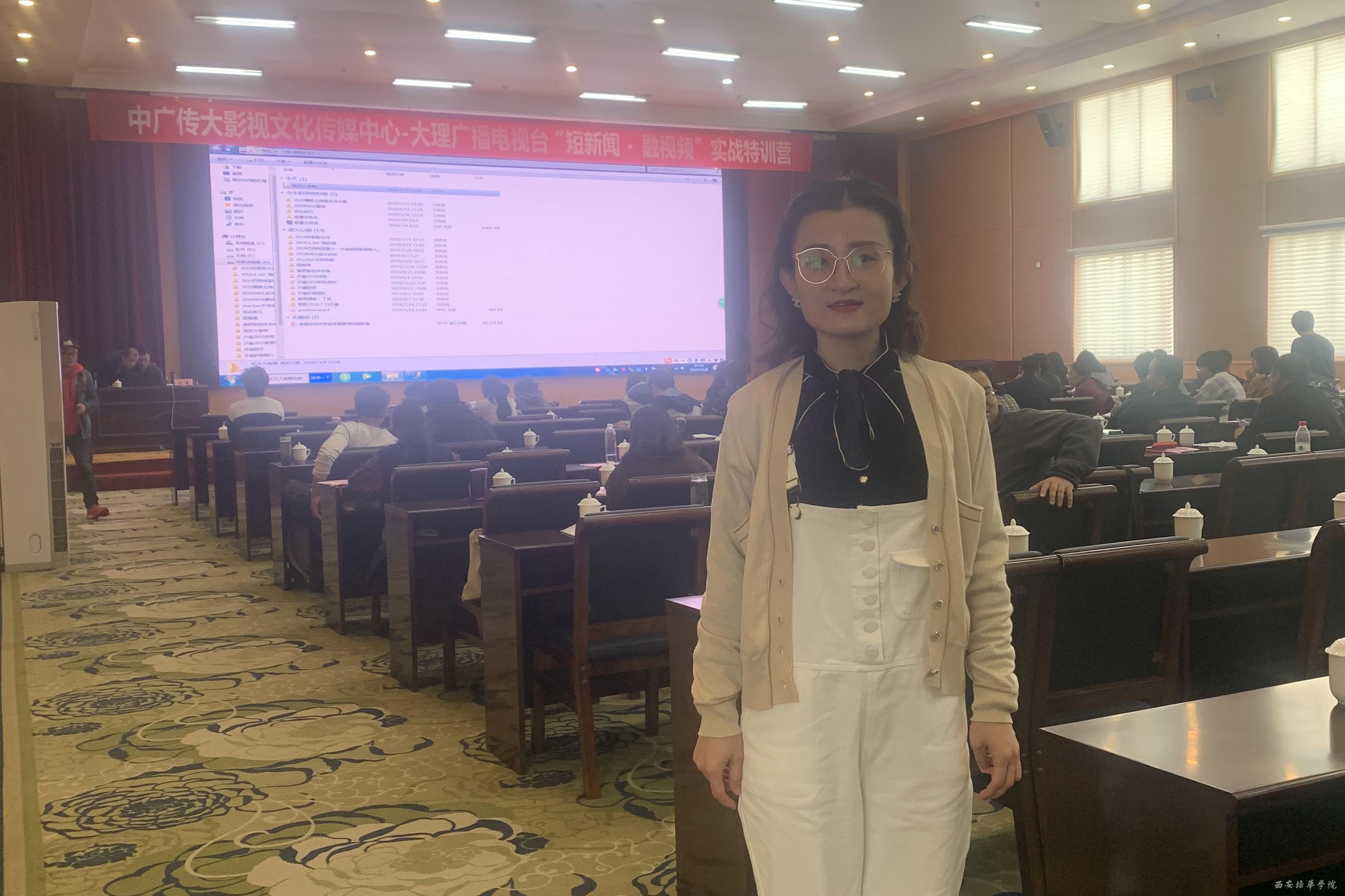 2020 年11 月6 日—11 月9 日中国影视传媒资讯网在云南举办了“短新闻·融视频”2020 视频摄制与直播带货实战特训营活动,西安培华学院传媒学院广播电视编导专业范瑞婵老师经专业推荐,参加了特训营学习。