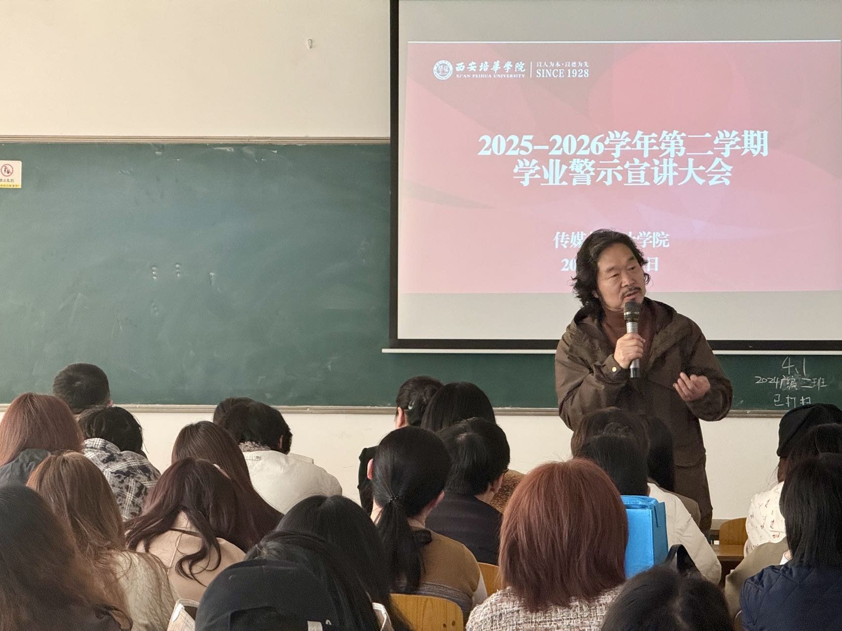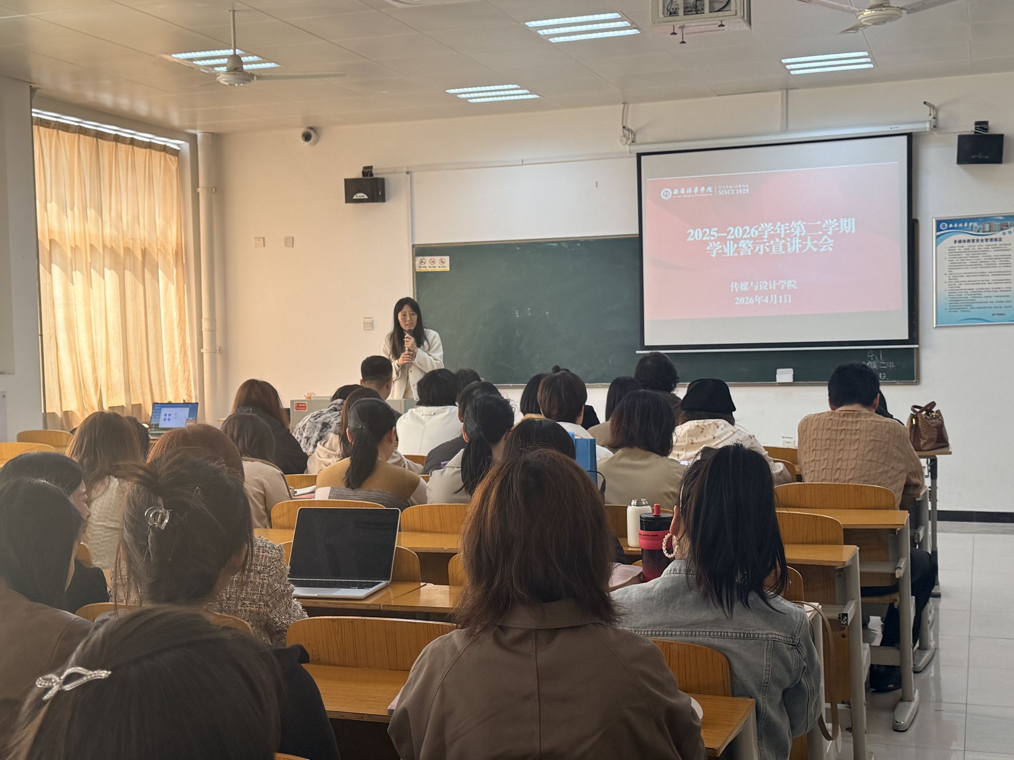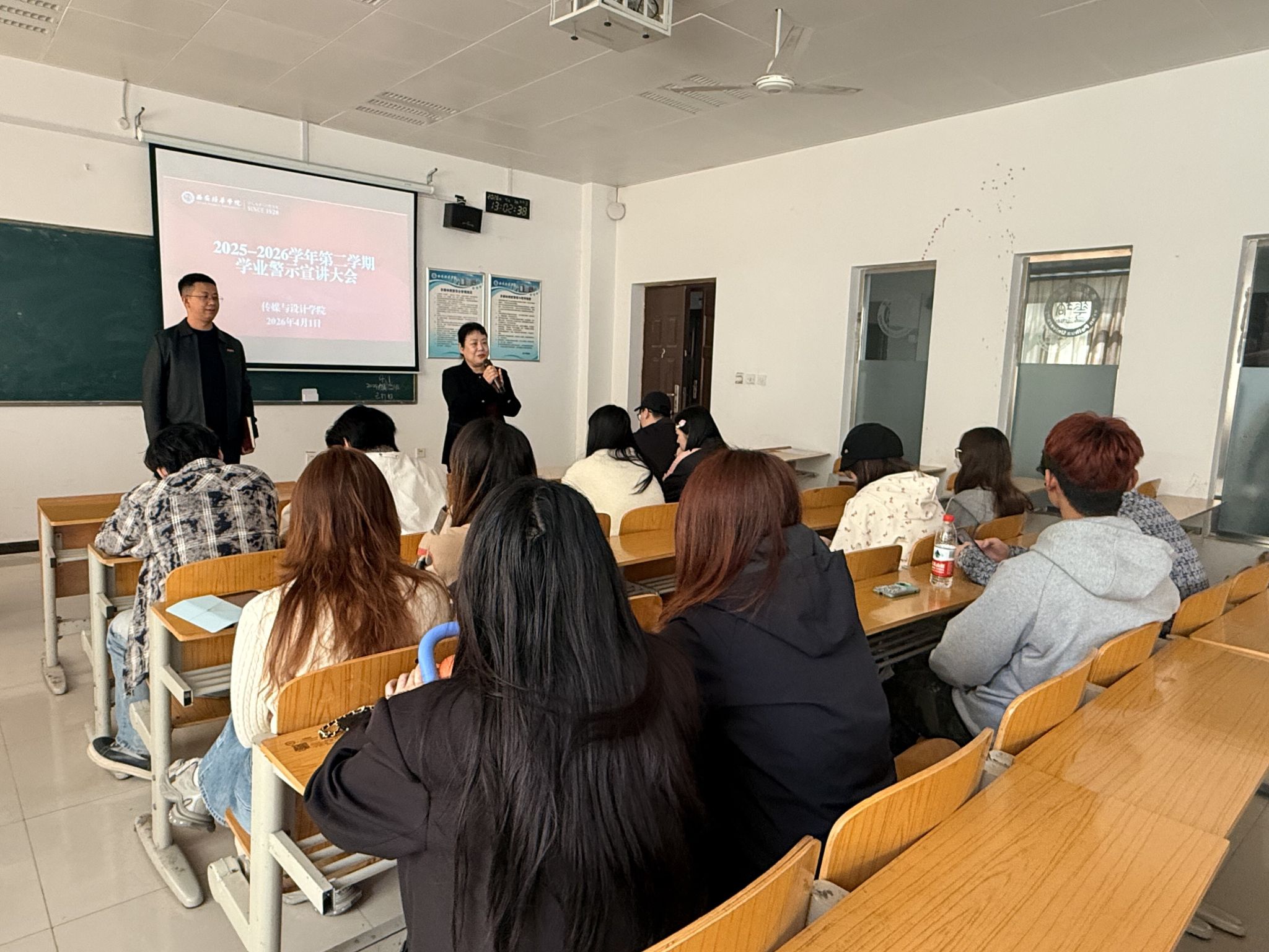为进一步提高人才培养质量,加强对学生学业的指导,推进学风建设,充分发挥学院、学生、家庭“三结合”教育功能,保障教育教学和人才培养质量,2026年4月1日中午,传媒与设计学院于汇知楼6415召开2025-2026学年第二学期学业警示宣讲大会。参会人员有院长詹秦川、副院长邵璐、院长助理王璐、党委副书记兼一站式服务站站长坚强、学生素质发展教研室陈雪、各专业带头人(负责人)、相关学业导师、教学科研干事、学生干事、辅导员及学业预警学生。