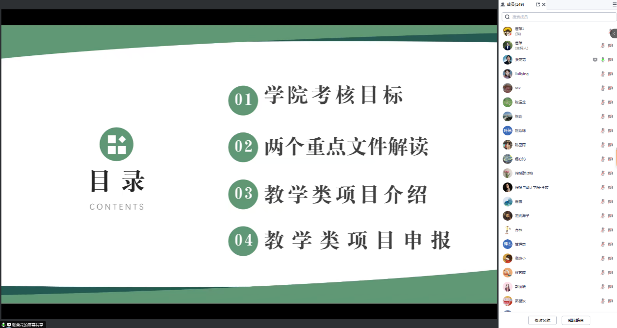 张院长结合自身经验,对各专业全面落实年度目标、如何有效开展教育教学研究给出了一些建议,一是明确目标,有计划地发力;二是优化项目团队结构,加强团队建设;三是充分利用暑期时间,开展交流学习活动;四是发挥专业骨干教师引领作用;五是青年教师应主动学习,通过导师获得专业指导;六是鼓励跨专业合作,拓宽教育教学研究思路。