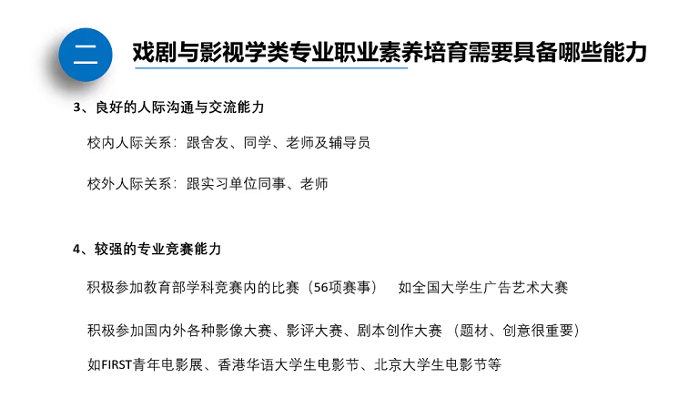 吉教授本期讲座内容包含专业素养与论文写作两个模块,他首先从宏观层面介绍及分析戏剧与影视学学科专业在全国、全省发展现状,并从专业与学科的关系辨析出发,介绍戏剧影视专业与学科发展现状,同时结合作品分析及创作实例,生动全面地解析专业从业者必须具备的素养和能力。