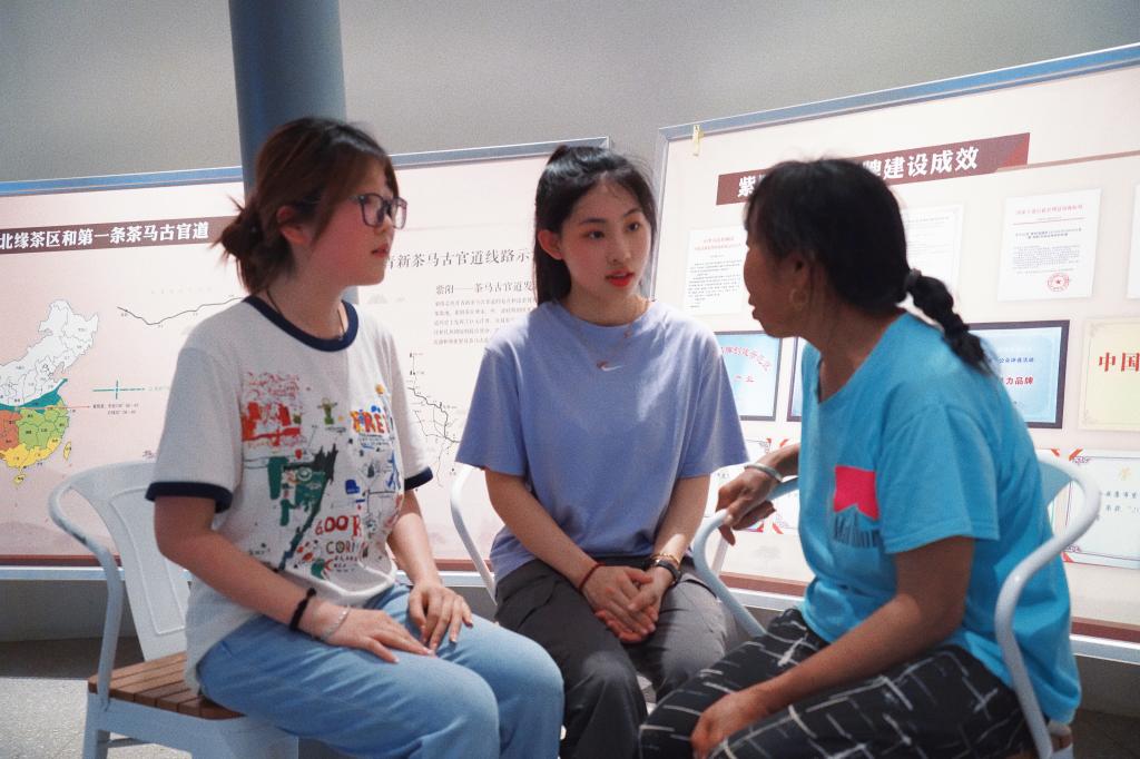 西安培华学院学生在富硒茶山与当地茶农探讨茶叶生长