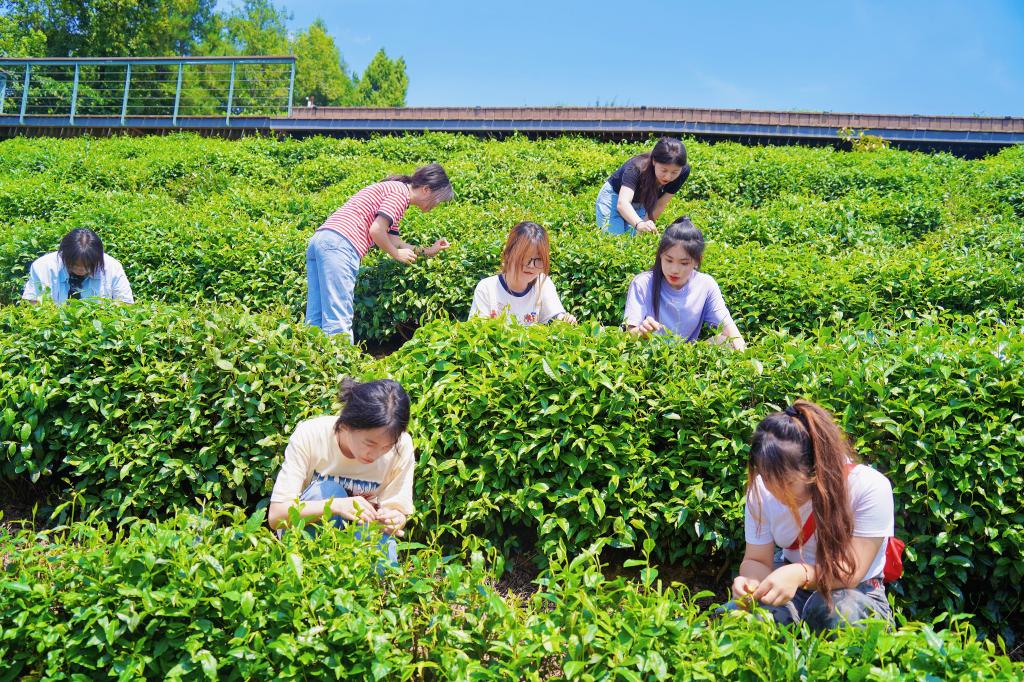 西安培华学院学生在富硒茶山体验采茶乐趣