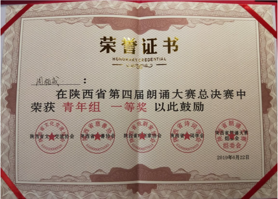 第七届丝绸之路国际电影节嘉年华“电影配音大赛,冠军;