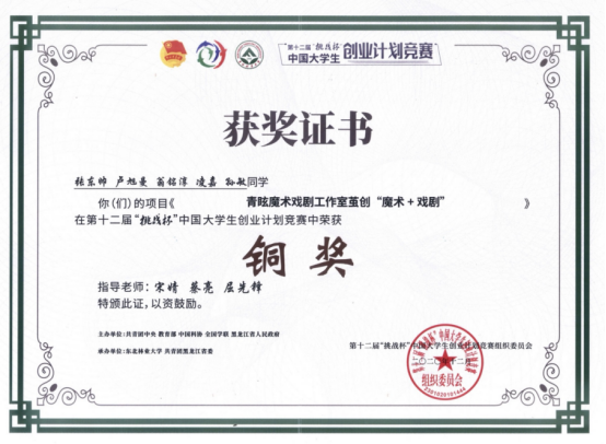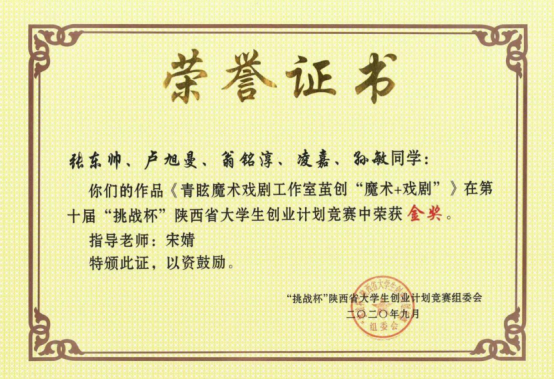 第十届“挑战杯”陕西省大学生创业计划竞赛,金奖;