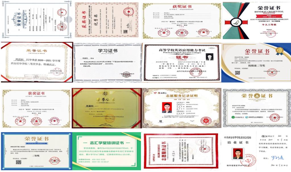 不断实践:在社会实践中,利用假期深入建筑类企业实习,参与BIM全过程应用项目20余项,承接BIM类投标阶段、施工阶段应用项目10余项,积累丰富实践经验。