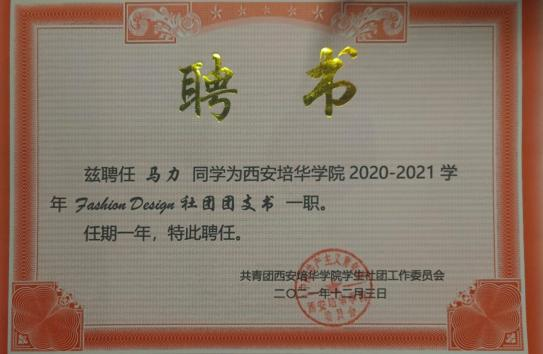 马力党员之星,建筑与艺术设计学院服装与服饰设计专业19级的一名同学。该生自入学以来,就刻苦努力地学习,并通过一系列社会实践活动不断体现着自己的个人价值,塑造着个人品性。该同学已考取平面设计师(高级)资格证书、影视制作专家(高级)资格证书;荣获体育单项教学比赛“优秀志愿者”、“优秀共青团员标兵”、“优秀学长”等的称号和第七届“互联网+”三等奖、担任西安培华学院fashion desion团支书,并已在中国核心期刊上发表一篇论文;2020年12月被评为暑期“三下乡”“社会实践队标兵团队”……因各方面的全面发展,该生于2020年12月荣获“姜维之”奖学金。马力同学发挥了新时期优秀青年人的榜样作用,他用实际行动为自己的青春书写了不凡的篇章,他对待生活的态度在他周围的同龄人中产生了积极影响,他用他的成果向我们诠释着青年人该有的精神面貌和志向!