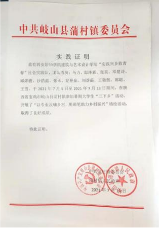 为响应国家乡村振兴的号召,为村容村貌增添时代审美气息和文化氛围。充分发挥专业特长,通过社会实践加强自身专业素养,帮助农村发展。西安培华学院建筑与艺术设计学院实践兴乡致青春队,以“走出象牙塔,助力新农村”为社会实践主题。采用绘画形式,为新农村发展贡献出当代大学生的力量获得了大众普遍的积极评价。