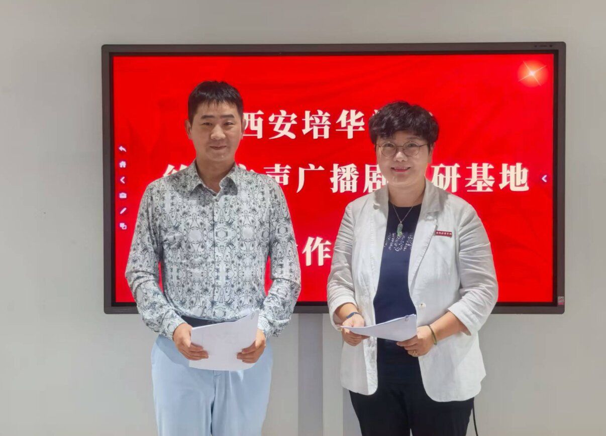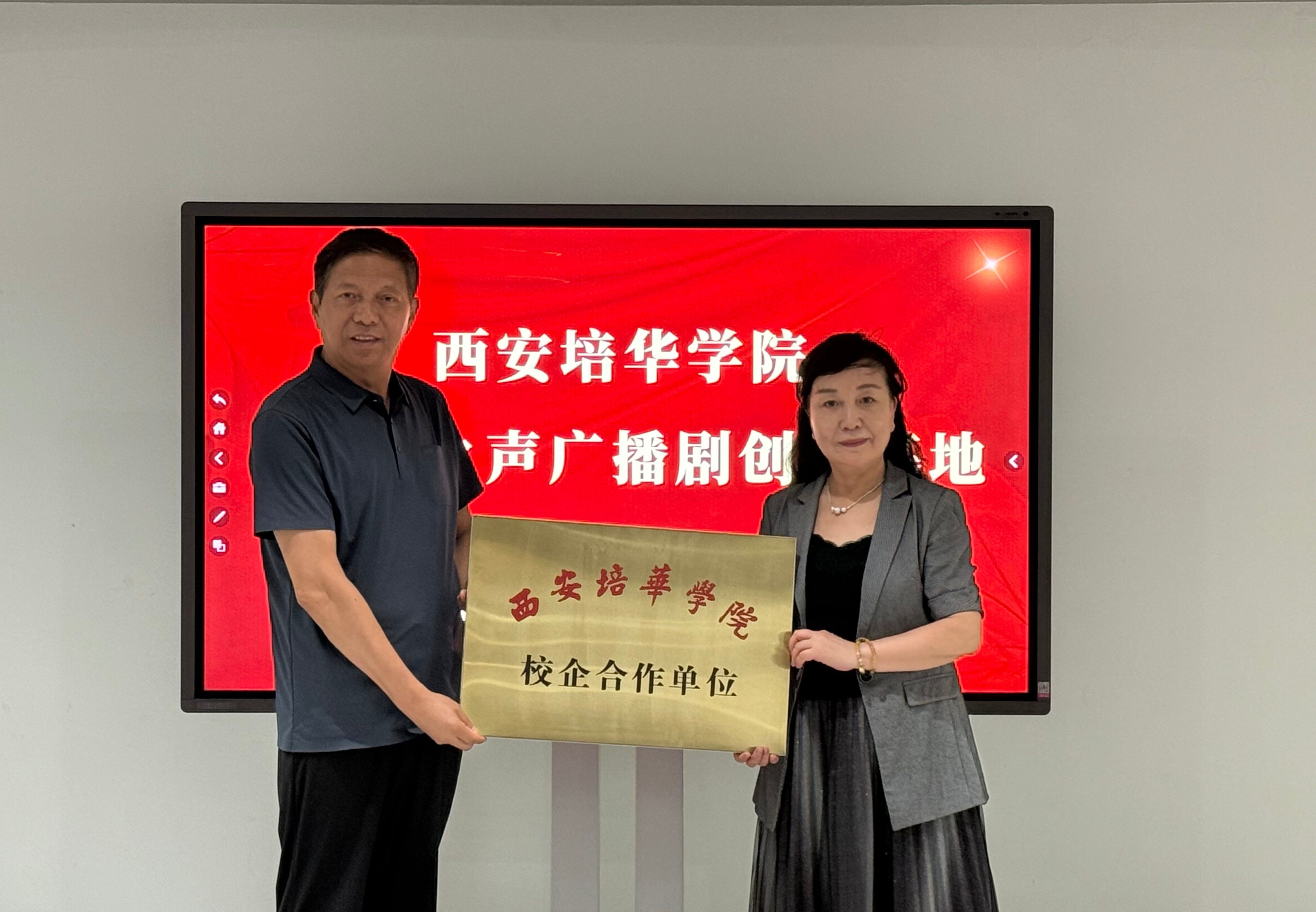 随后,西安培华学院传媒与设计学院常务副院长徐莹与陕西新动向传媒股份有限公司总经理江兴超签订了校企合作协议。西安培华学院播音与主持艺术专业带头人周东华教授与公司主任殷满仓共同为校企合作揭牌。
