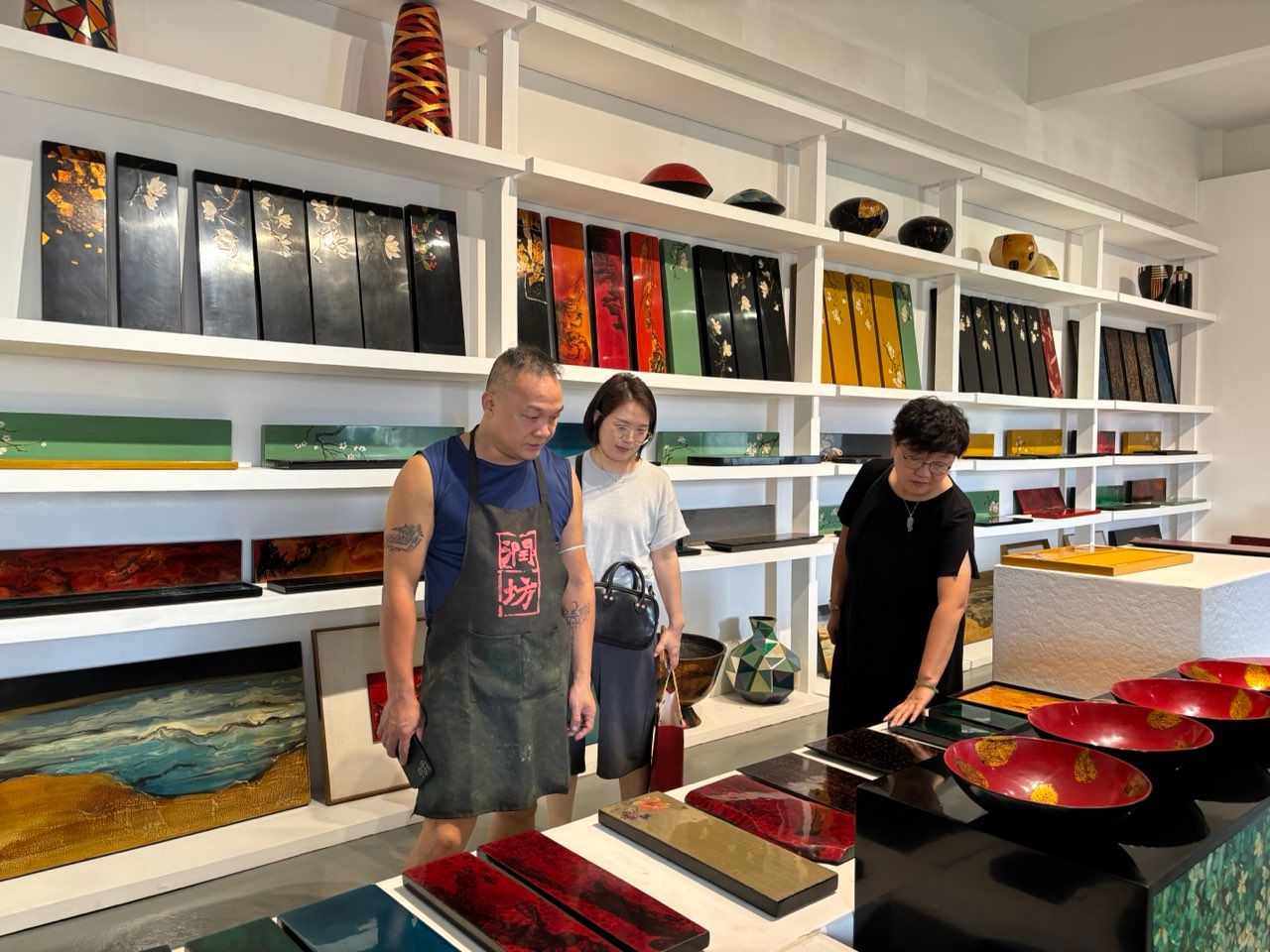 7月24日,润坊(福建)大漆文化产业集团创始人、2024福布斯中国杰出匠人、艺术总监周润达陪同常务副院长徐莹一行参观了生产厂房及产品展厅,重点介绍了大漆工艺的传承与创新、企业的发展理念及未来规划。润坊(福建)大漆文化产业集团以非遗大漆技艺为核心,结合当代设计理念,致力于打造兼具艺术价值与市场潜力的产品,是福建省大漆文化产业的重要推动者。