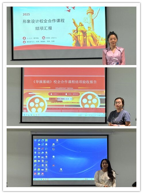 为进一步深化产教融合,推动教育创新,全面检验学院校企合作课程建设成果,5月19日下午,传媒与设计学院在第四会议室顺利开展了第一批校企合作课程结项验收工作。特别邀请了教师教学发展中心主任、应用型课程建设中心主任张伟,学院副院长、校级教学名师张荣花、学院副院长、数字媒体艺术专业带头人邵璐,督导组组长、新闻学专业负责人梁小凤、校级课程思政教学名师、播音与主持艺术专业骨干教师陈连龙担任专家评委,第一批校企合作课程负责人及团队成员现场汇报课程建设情况。本次结项验收工作吸引了2025年培育的校企合作课程及地方特色课程负责人现场观摩,为学院未来课程建设提供了宝贵的经验和示范。