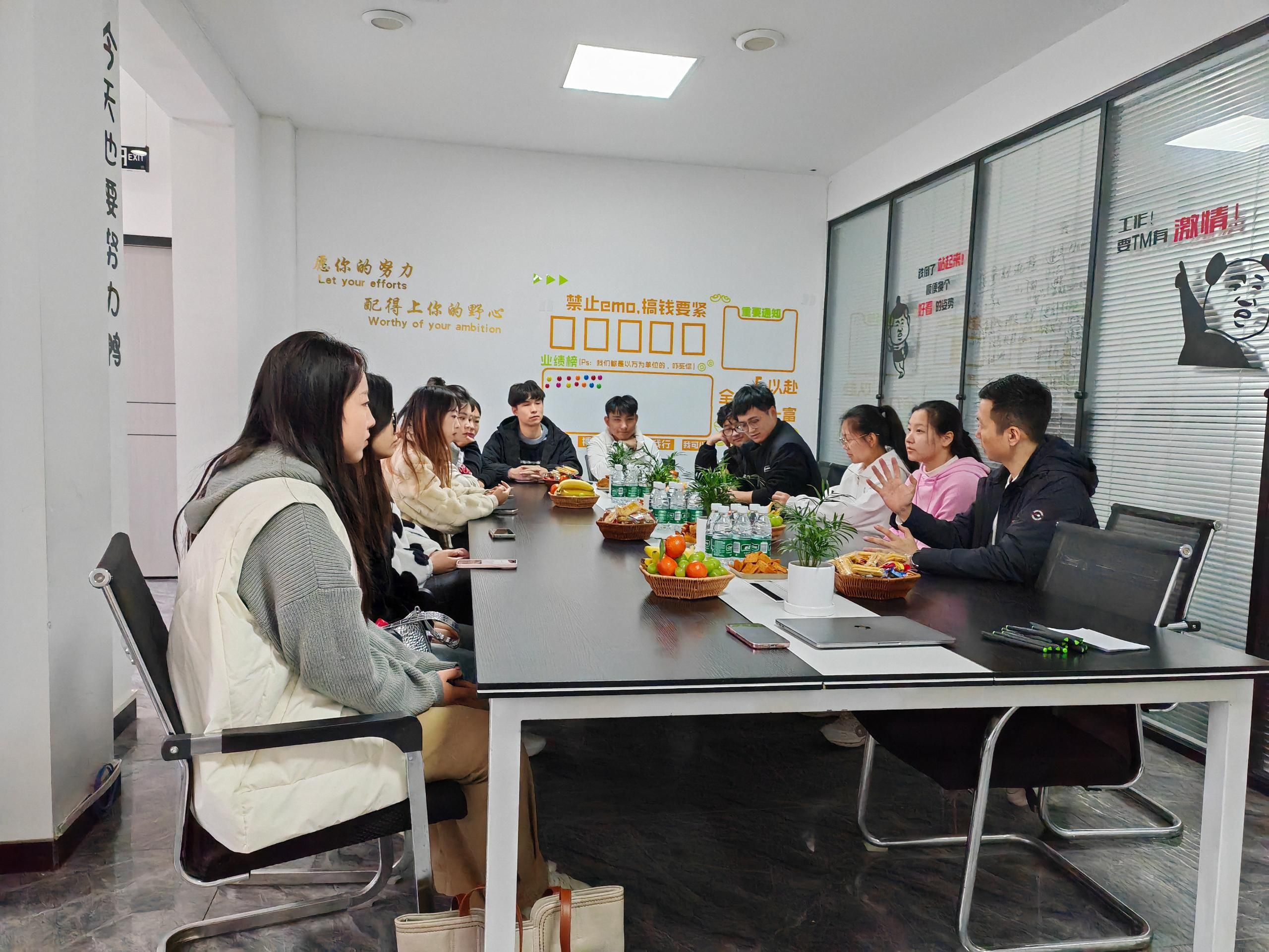 课程负责人雷老师与学生团队在京沪传媒研讨项目方案