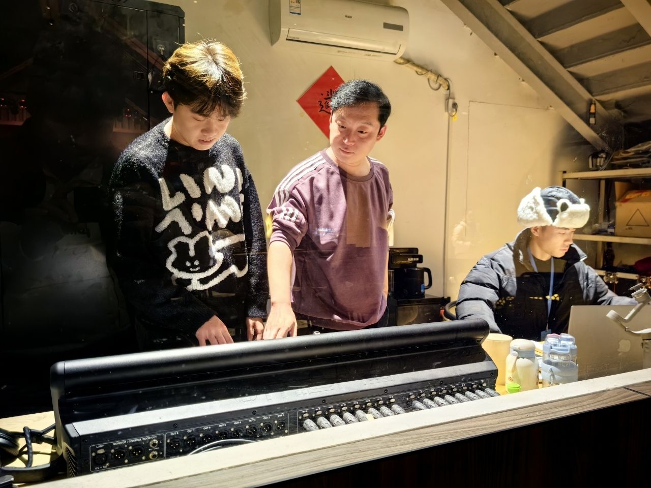 企业导师李老师在陕西非遗大剧院指导学生现场操控