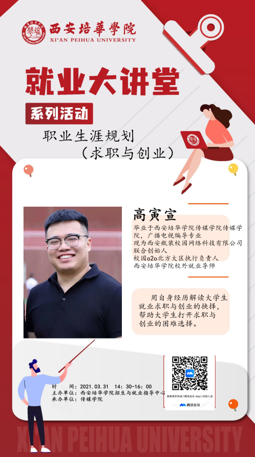 2021年3月31日下午,通过腾讯会议平台,开展了一场《求职与创业》主题分享会,传媒学院组织各年级学生代表140余人参加了本次线上主题分享活动。
