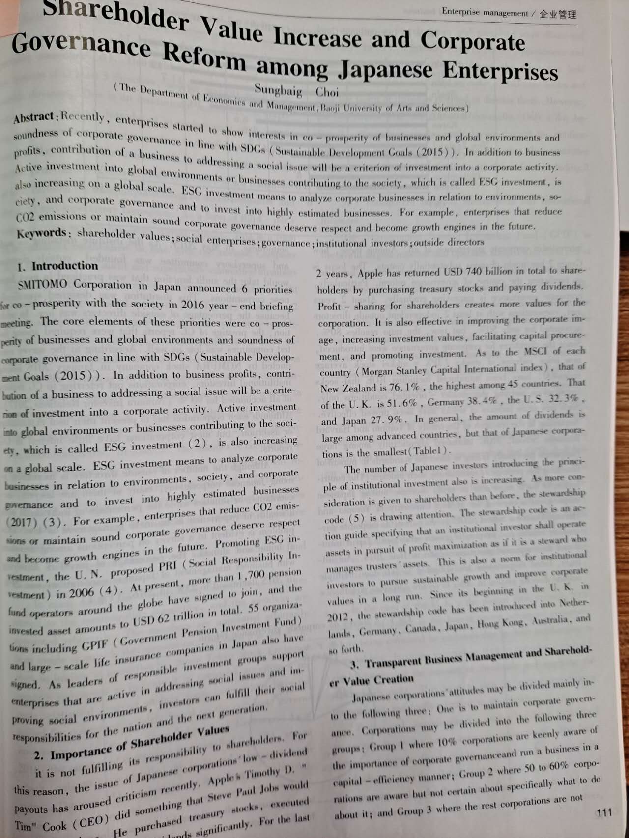of corporate governance in line with SDGs(Sustainable Development Gpals(2015)).In addition to business profits,contrbution of a business to addressing a social issue will be a criterion of investment into a corporate activity.
