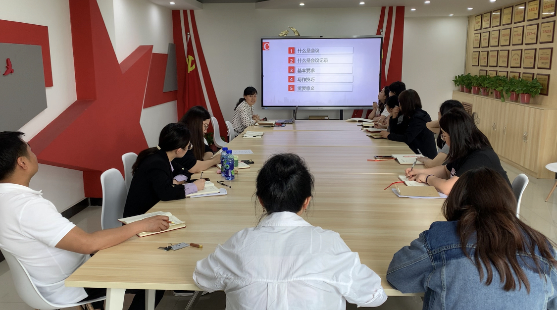 组织秘书刘艳娇通过深入浅出的讲解,介绍了各类会议纪要的构成要素、基本格式,并向与会人员展示了党政联席会议记录以及党内各类会议记录与纪要的模板。
