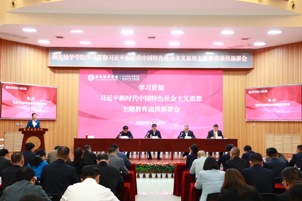4月18日,西安培华学院召开学习贯彻习近平新时代中国特色社会主义思想主题教育动员部署会。校党委书记罗新远作动员讲话,省委教育工委、省教育厅主题教育第二巡回指导组组长郭武军作指导讲话。校党委副书记、副校长姚文静主持大会。
