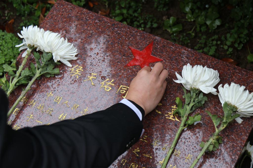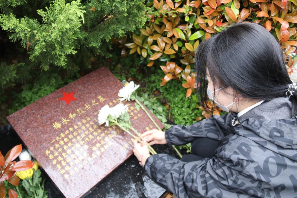 随后大家来到英雄墓碑前为英雄们献花拂去灰尘,大家满怀崇敬之情为革命烈士表达敬意和寄托哀思。