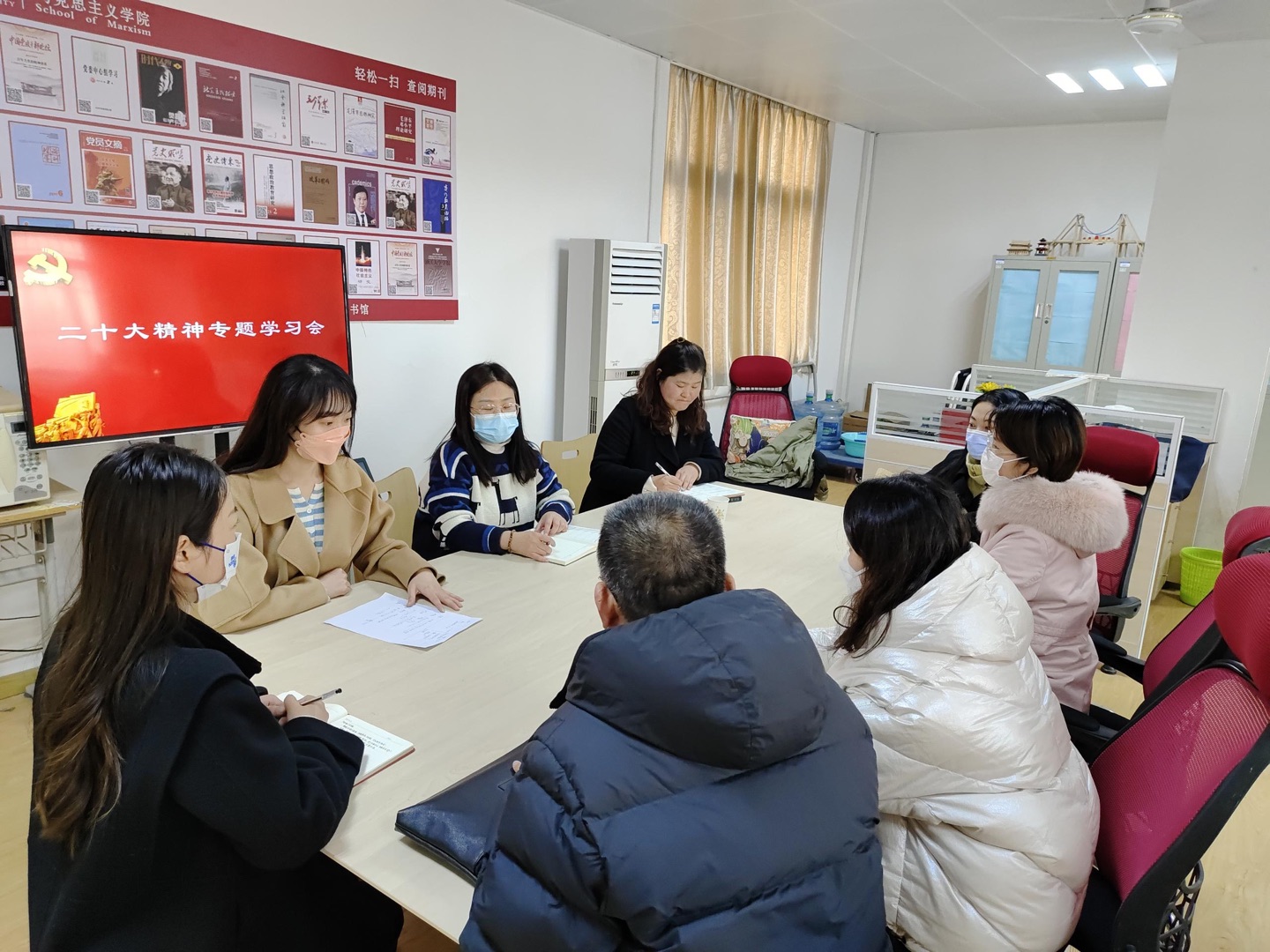 为了进一步学习贯彻党的二十大精神,2023年2月24日上午,《思想道德与法治》教研室在博远楼2401-A开展党的二十大精神专题学习会。德法教研室主任沈永真、冯小卫、陈欢等多位党员教师参加此次会议。