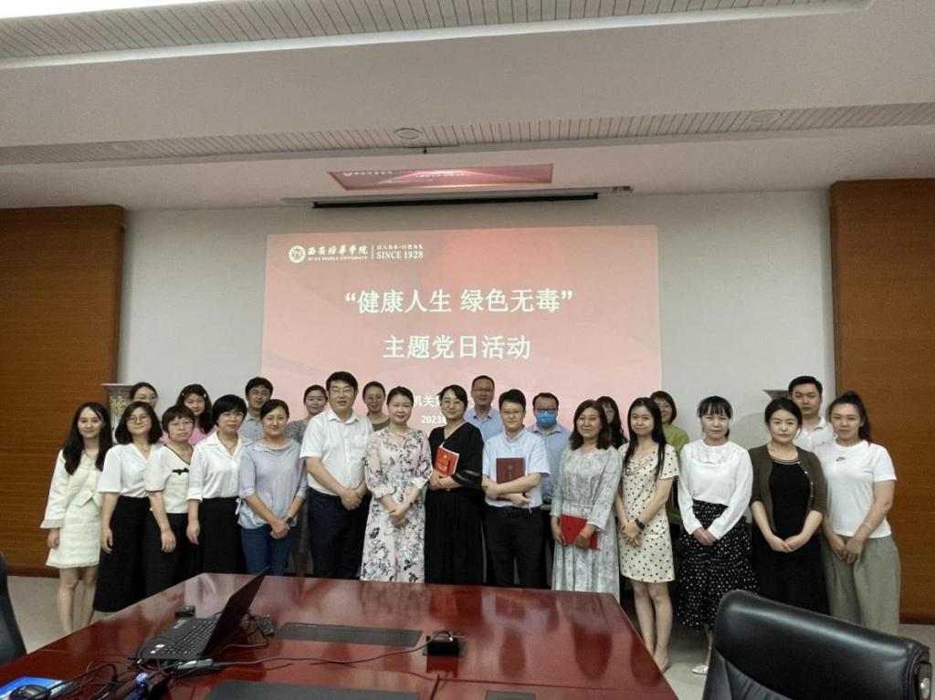 6月15日下午,西安培华学院机关第二党支部在明德楼第一会议室开展“健康人生,绿色无毒”主题党日活动,会议由组织委员王澍主持,机关第二党支部全体党员参加。