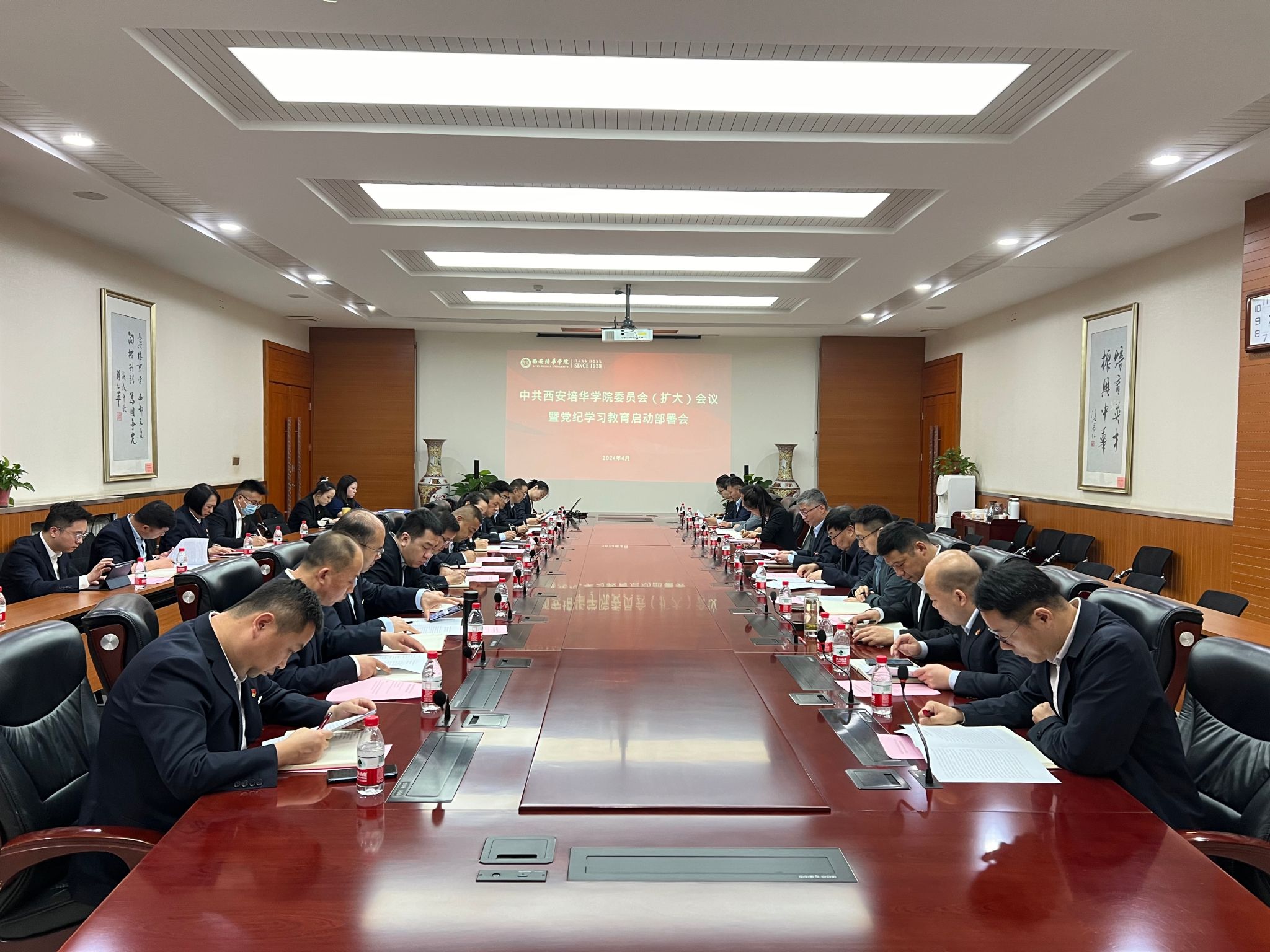 4月15日,西安培华学院召开党委扩大会议暨党纪学习教育启动部署会,传达了中央和省委关于开展党纪学习教育的安排部署,并对学校党纪学习教育工作进行了安排动员。会议由校党委书记刘锋主持。