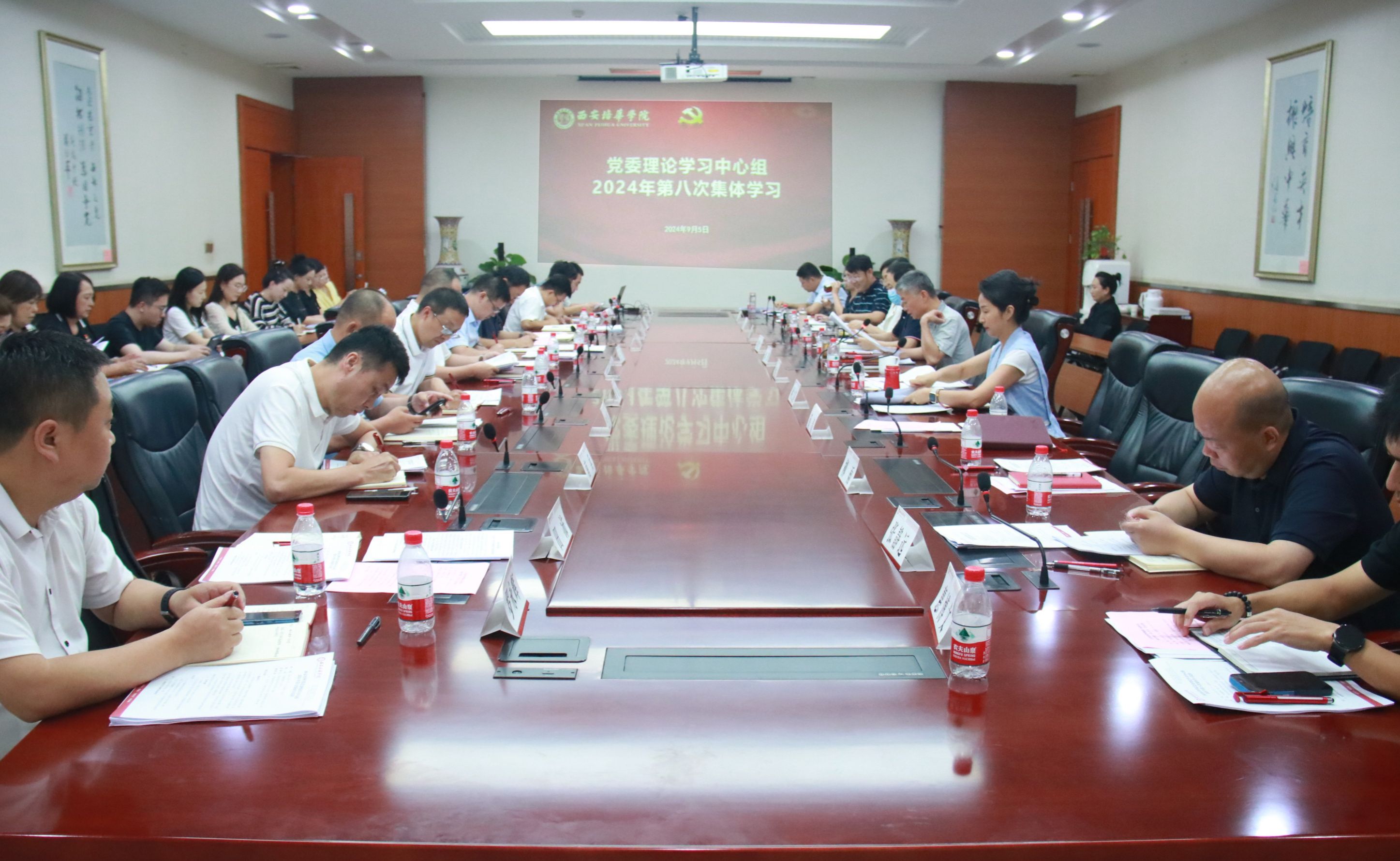 9月5日下午,西安培华学院在明德楼第一会议室举行了2024年第八次集体学习。本次学习由校党委书记刘锋主持,校党委理论学习中心组成员、各学院党委(党总支)书记、副书记,直属党支部书记、副书记,以及党务干事等参加了学习。