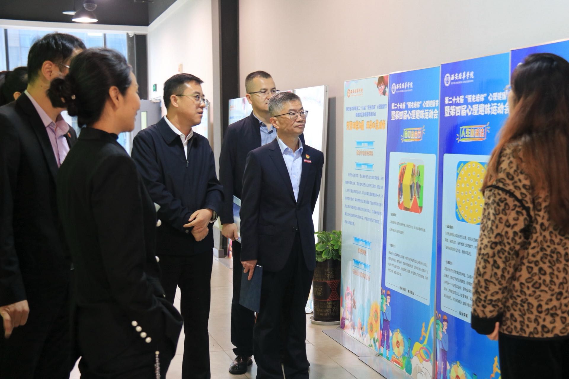 座谈会结束后,校团委书记董莹携各位领导前往恒友楼大学生文体中心、陕西普通高校心理健康教育与咨询示范中心以及校史馆进行实地参观。