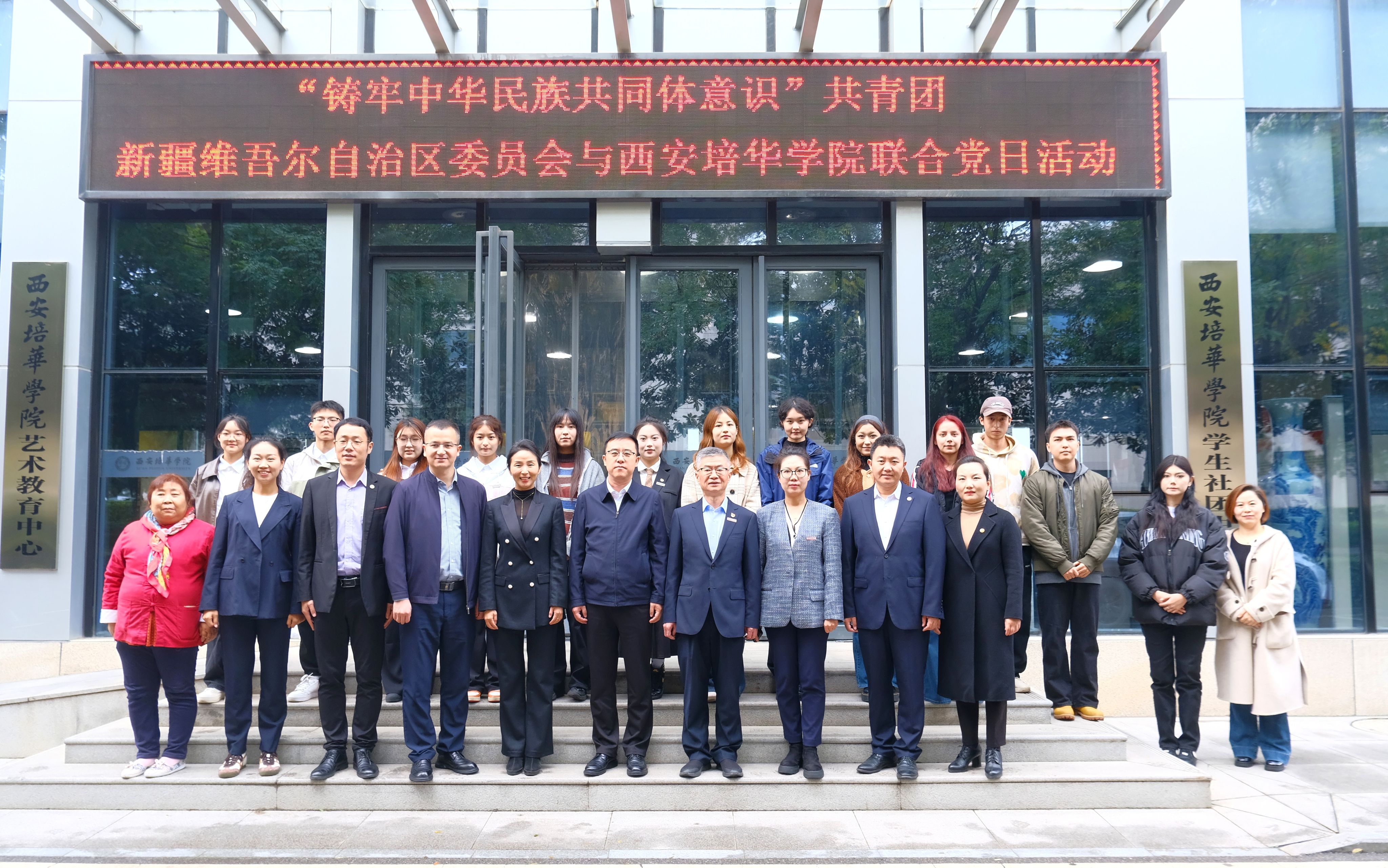 11月1日,西安培华学院以“铸牢中华民族共同体意识,同心共筑中国梦”为主题,联合共青团新疆维吾尔自治区委员会,于恒友楼开展党日活动。本次活动邀请到共青团新疆维吾尔自治区委员会副书记孟利明、学校部部长赛迪艾合麦提·亚尔麦麦提,西安培华学院党委书记刘锋、副校长兼党委副书记姚文静、工会主席兼党委工作部部长陈玲、党委委员兼合作发展中心及校友服务与发展中心主任柳雨、党委学生工作部部长兼学生服务中心主任权勇太、党委宣传部副部长兼新闻中心副主任霍元敏、校团委书记董莹及少数民族教师、学生代表共同参与本次活动。
