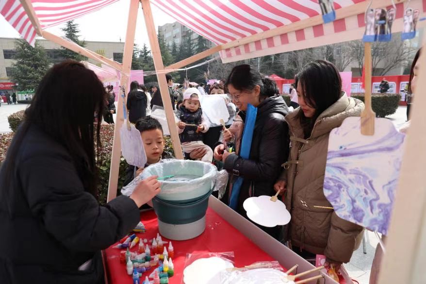 3月7日,“我们的美好时光”游艺会、培华女性教育展、性别平等基本国策宣传在丰园餐厅西广场拉开帷幕,陕西省教科文卫体工会主席徐富权,西安培华学院党委书记刘锋,党委副书记、副校长姚文静,副校长罗新远,校工会主席陈玲与女教职工们一起,共同了解发展中的女性力量,在怀旧游艺与非遗文化中回味儿时快乐。