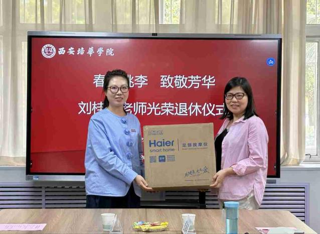 陈玲主席代表学校肯定刘桂萍老师21年来的付出和成绩,她讲到我校十分重视教职工的荣休工作,举办荣休仪式正是对教师奉献精神的充分认可。希望刘老师以后还可以继续为学校建言献策,并邀请刘老师在培华百年校庆、校友活动以及重阳节活动时能够返校回来看看,共鉴学校发展。