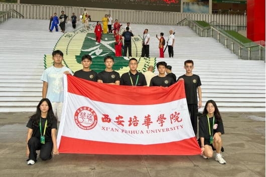 On August 28th, the 9thWorld Traditional Wushu Championships, hosted by International Wushu Federation and China Wushu Association, and organized by Sichuan Sports Bureau, Sichuan Wushu Association and Leshan Municipal People’s Government, came to an end. Jin Ma, Ding Jingyang, and Hui Bowen, teachers of School of Physical Education of Xi’an Peihua University, proactively set up a wushu team and compete with more than 7,000 athletes from 53 countries and regions.