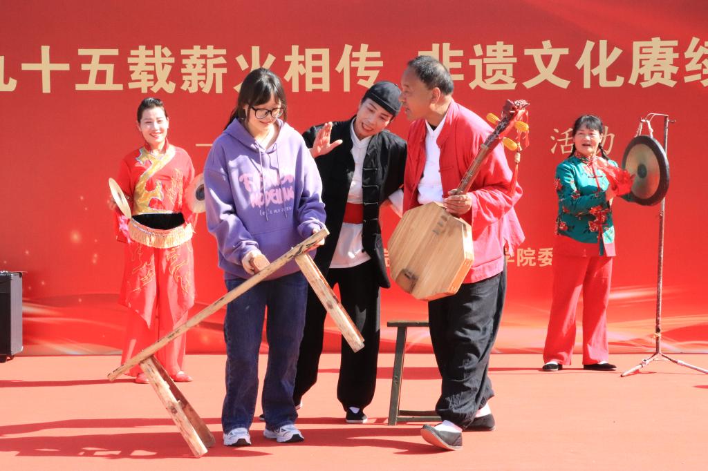 The older artists showed exciting programs such as Huayin Laoqiang, Huashan Opera, shadow puppetry, Shaanbei folk songs, Chang'an black pottery, and drum music to teachers and students. This activity also displayed clay sculpture, rubbing, shadow shadow, black pottery,dough modeling, porcelain, silk flower, cloth mouth gold bag, nuclear carving, paper cuttings and other intangible cultural works in the west square of the school.