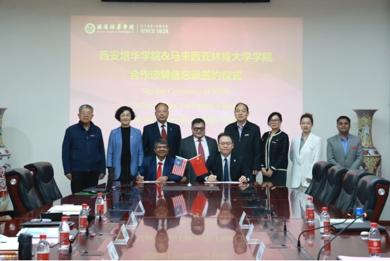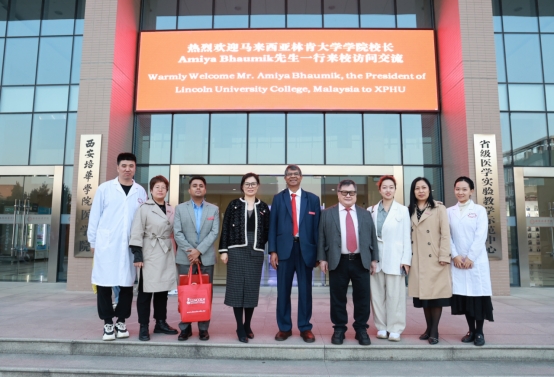 On October 23th, Dr. Amiya Bhaumik, president of Lincoln University College in Malaysia; Dr. Henry Ma, chairman of Hong Kong World Chinese Entrepreneurs Investment Foundation; Huang Ming, director of China Regional Marketing Department; and Kishor Gaire, International Affairs Officer, came to our school for exchange visits. Chairman of Xi’an Peihua University, Jiang Bo, Party Secretary Luo Xinyuan, Vice Presidents Liu Yuelian and Yu Guoliang, Dean of the School of Accounting and Finance Zhao Xuanxuan, and Direc-tor of the International Exchange Center Wang Peng participated in the discussion and accompanied the visit.