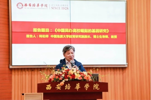 Professor Ke Youxiang, dean and doctoral supervisor of the Education Research Institute of China University of Geosciences, delivered a report titled “Genetic Research on the Rise of Private Universities in China”.
