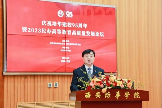 To celebrate the 95th anniversary of the founding of Xi’an Peihua University and promote its high-quality development, the “2023 Forum on High-Quality Development of Private Higher Education”, sponsored by the Shaanxi Higher Education Association and Shaanxi Private Education Association, and organized by Xi’an Peihua University, was held in the Mingde Building of Xi’an Peihua University on October 22nd. Experts and scholars in higher education, leaders of private universities, and industry and enterprise experts gathered together to share educational experiences, explore development paths, and discuss high-quality development strategies for private universities through offline forum exchanges and online live interactions. The theme of this forum was “High-Quality Development of Private Higher Education”, and it is of great significance to deeply explore how private higher education can play a greater role in building a strong education country, and better play an irreplaceable positive role in addressing development challenges, solving contemporary issues, serving regional innovation and development, and achieving high-quality development.