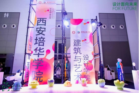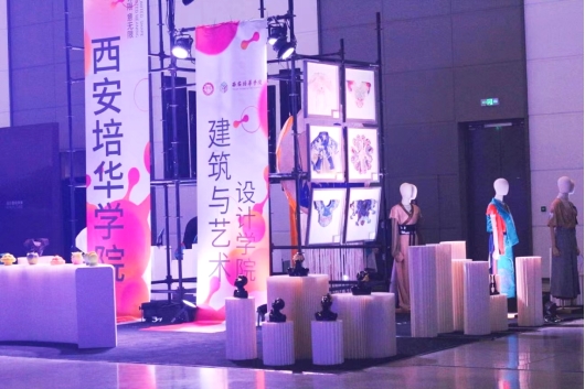 In the four theme exhibition halls, the works of the School of Architecture and Art Design of Xi’an Peihua University were displayed in the A10 exhibition area of Hall 5. The exhibits were mainly designed works of majors in clothing and apparel design and arts and crafts, reflecting the collision of new fashion and tradition.