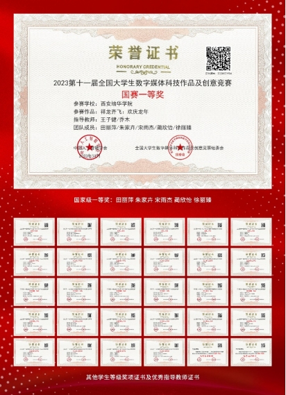 On November 27, the national finals of the“11thNational College Student Digital Media Science and Technology Works and Creativity Competition”sponsored by the China Artificial Intelligence Society came to an end in Changzhou, Jiangsu. The participantstutored by the Design Innovation Center of Xi’an Peihua University won 1 first prize, 2 second prizes, and 4 third prizes at the national level; 3 firstprizes, 4 second prizes, and 15 third prizes in the Northwest Division.